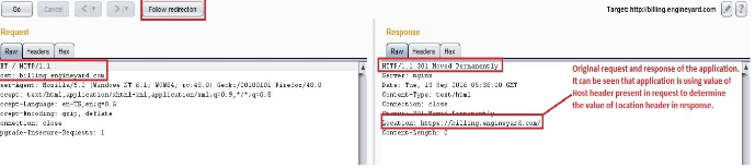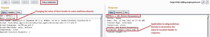 Now whenever a user tries to access billing. engineyard.com from his browser he will be redirected to evil.com since the web-cache has been poisoned as a result of Host header injection.