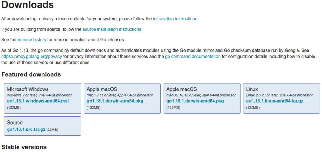 Open the url and download go lang from an official source
